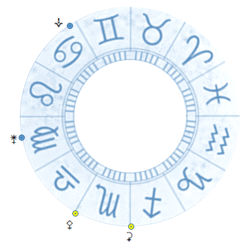 Cominciamo osservando le quattro energie secondarie di Venere: Vesta è impegnata nel suo moto retrogrado che la riporterà dal Cancro ai Gemelli, e Giunone si trova nel segno della Vergine, dove rimarrà fino all’estate prossima; Pallade e Cerere, invece, si muovono in altre zone dello Zodiaco e sono in procinto entrambe di cambiare di segno.