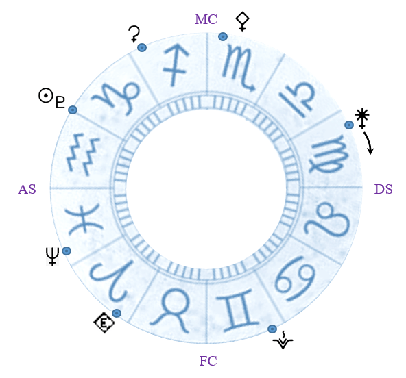 Analizziamo le energie all’interno di questo Yod: le intuizioni di Pallade in uno dei segni più misteriosi dello Zodiaco necessitano di un aiuto supplementare, per portarci ad una maggior consapevolezza; lungo il quinconce correttivo, di ingresso, tra Pallade ed Eris, è importante solidificare la propria autostima e questo può essere fatto solo attraverso le opere, poiché Marte (azione!) è in domicilio sia in Scorpione che in Ariete.