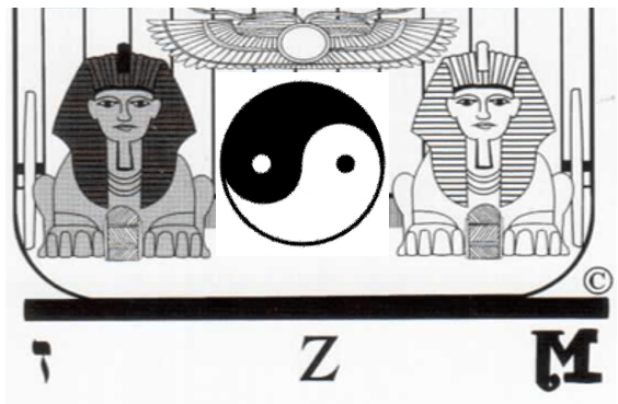 Potremmo anche azzardare un nuovo tipo di associazione tra le dodici strisce verticali che sono sullo sfondo dietro alle Sfingi, e la sequenza delle tre croci dello Zodiaco, relazionando, da sinistra a destra, rispettivamente: i primi quattro segni alla Croce Mutevole, i quattro centrali alla Croce Fissa e gli ultimi quattro alla Croce Cardinale.