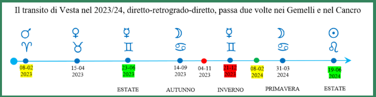 Ecco l’ingresso di Vesta-Fuoco nel segno del Cancro, che avviene il 31 marzo 2024.