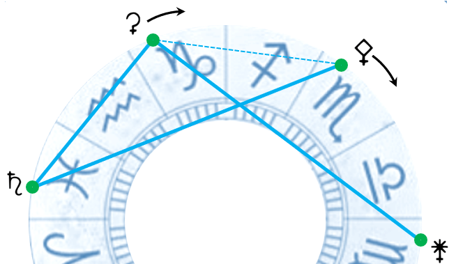 Saturno quindi forma degli aspetti con le energie secondarie di Venere che sono più intimamente legate alla personalità: Pallade-Aria esprime la relazione tra la mente razionale e la mente superiore, intuitiva; Giunone-Acqua racconta della relazione con le emozioni, in questo momento tenute a bada in un segno molto disciplinato e rigoroso come la Vergine; Cerere-Terra è il legame con la nostra stessa presenza sulla Terra, nonché quella con il nostro corpo, fisico in prima istanza, ma anche emotivo.