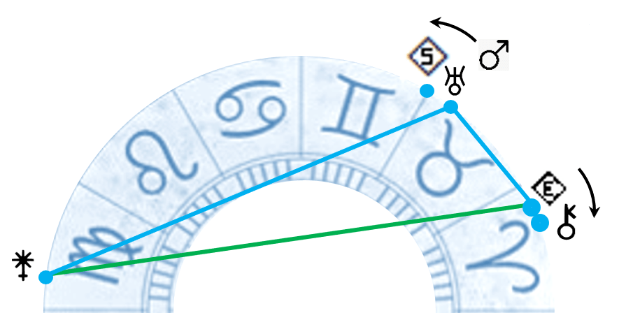 Dal 17 al 28 luglio Marte transita anche in congiunzione su Sedna, che si trova al primo grado del segno dei Gemelli.