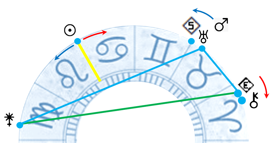Adesso dobbiamo goderci il momento più importante dell’anno, quello in cui il Sole ritorna nel suo segno zodiacale di domicilio, il Leone, dal 22 luglio; il Sole ribadisce, se mai ce ne fosse bisogno, che l’energia evolutiva coincide con una sola direzione, indicata dalle frecce blu.