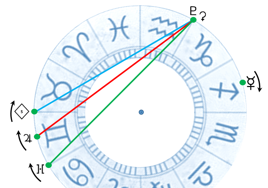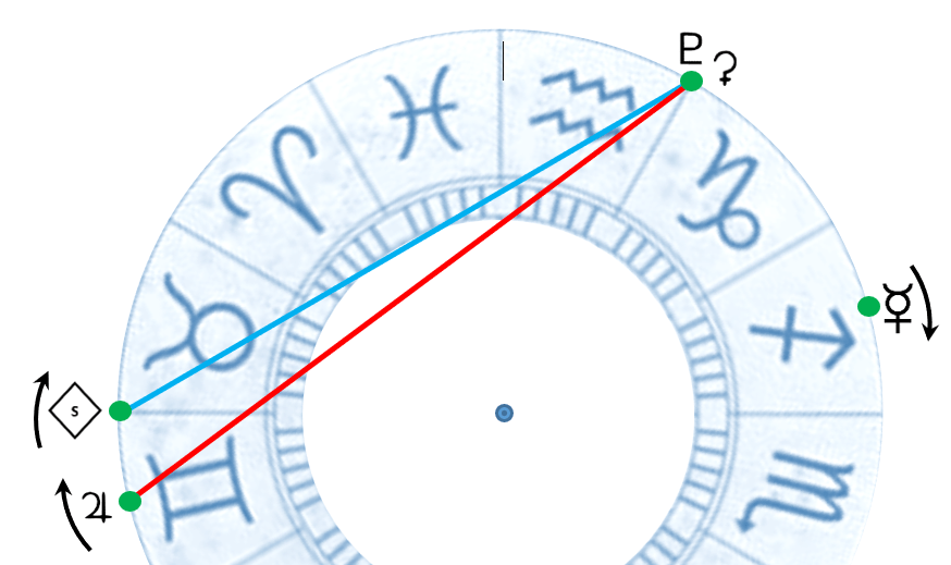 Nei primi giorni di dicembre sarà retrocesso di quanto basta per formare un aspetto disarmonico, come la sesquiquadratura, con la congiunzione Plutone-Cerere, ma con la differenza che Cerere è un asteroide della Fascia principale e si muove in modo molto più rapido rispetto al dio degli inferi.
