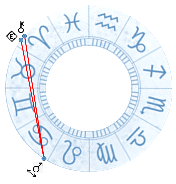 Questa quadratura non è il solo aspetto problematico per Marte, infatti c’è anche una tensione con Chirone, che si trova pochi gradi in ritardo rispetto ad Eris, nell’Ariete.