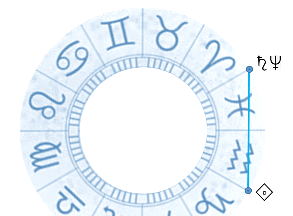Pertanto, la congiunzione stretta tra Saturno e Nettuno ai primi gradi del segno dell’Ariete forma tre aspetti di cui tenere conto: un sestile con Dike nell’Acquario, un sestile con Sedna nei Gemelli e, per l’appunto, la quadratura con Giove nel Cancro.