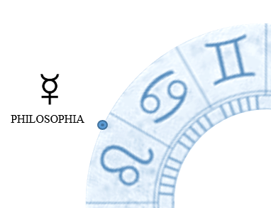 Mercurio dal 26 giugno al 5 luglio è in congiunzione con Philosophia, un asteroide della Fascia principale scoperto nel 1882; questo aspetto ci porta a parlare della loro relazione intima, che si esprime nel cosiddetto Mercurio Filosofico.