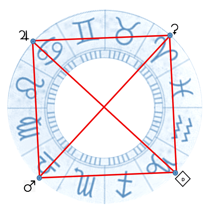 In effetti, troviamo Marte, in transito esattamente a metà del segno della Bilancia; durante il suo passaggio Marte forma aspetti con gli altri tre bracci della Croce,